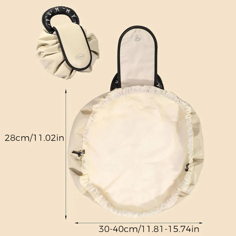 Le cordon de serrage permet une ouverture et fermeture facile, tout en assurant la sécurité de vos produits de beauté. Idéal pour être glissé dans votre sac à main ou utilisé comme trousse de voyage. Vous ne vous en passerez plus.